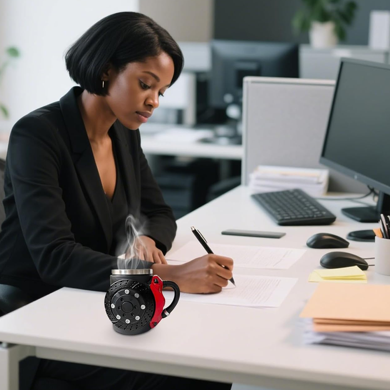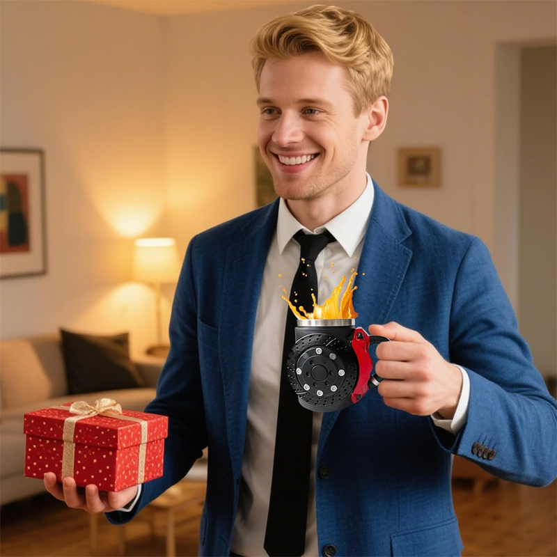 UNIQUE AUTOMOTIVE AESTHETICS - Showcase your passion for cars with a striking brake disc and red caliper design, bringing a bold to your daily routine. This mug stands out.