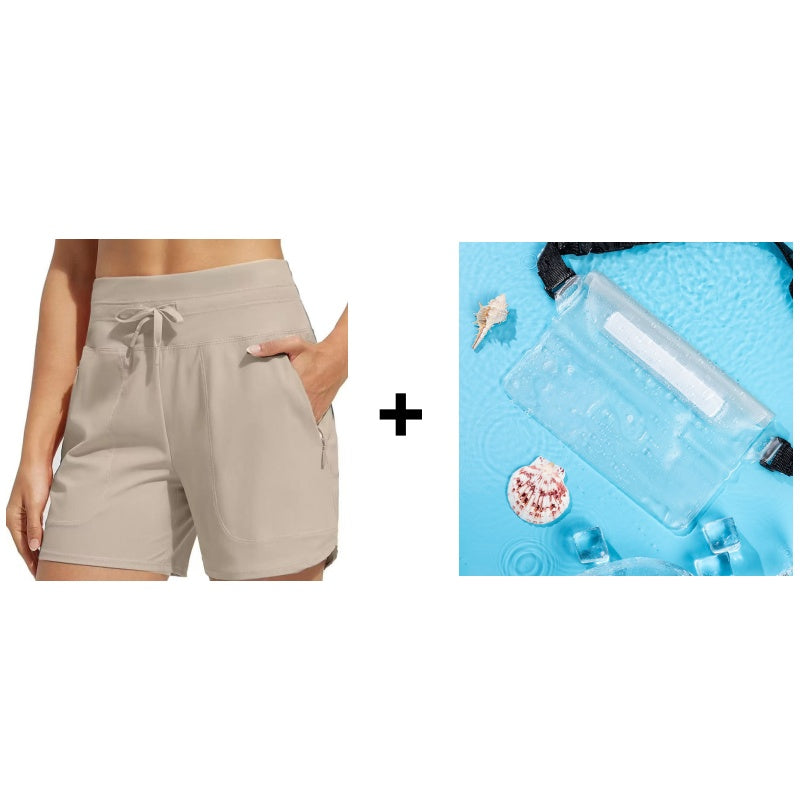 Swim shorts with 2 sides functional zipper pockets keep your phones,keys,and other items safe when you do some water sports and workouts.